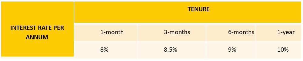 For the Sika Save Investment account, the interest rate varies depending on the investment option you choose and details are provided below.