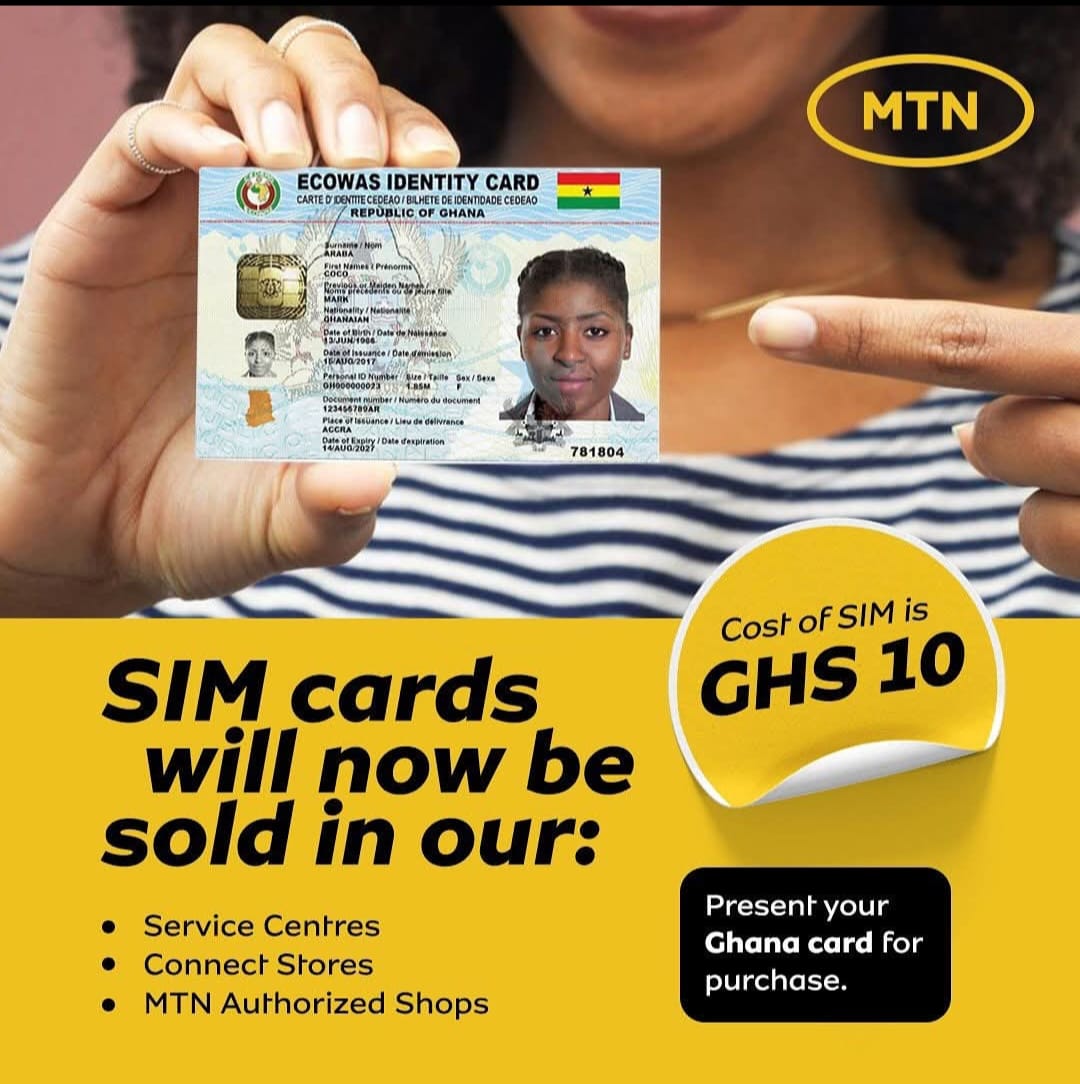 To buy a SIM card, simply present your Ghana Card, which is required for SIM registration.